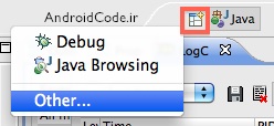 ۱۷.دوباره به ایکلیپس برگردید، تا الان تو منظر جاوا داشتیم کار میکردیم، حالا میریم سراغ منظر اندرویدی، اگه در قسمت بالا سمت راست صفحهی ایکلیپس نگاه کنید، این دکمه رو میبینید