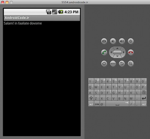 ۲۰.وقتی برنامه تو شبیه ساز اجرا شد، روی دکمه کلیک کنید، میبینید که با این کار برنامه به فعالیت Dovomi رفته ولی هیچی نشون نمیده و خبری از اون متنی که نوشته بودیم نیست، خوب اگه به فایل جاوامون برگردیم، تفاوت فایل جاوای dovomi و main در اینه که ما هنوز محتوای بصری رو به فایل جاوا ضمیمه نکردیم، (یعنی تابع setContentView رو استفاده نکردیم، چون این تابع به سیستم اندروید میگه که برای این فعالیت از کدوم محتوای بصری -فایل xml- استفاده بکنه)