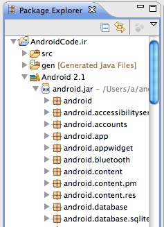 ۱۲.فولدر بعدی که می خوایم بررسی کنیم android 2.1 هست، این فولدر در واقع همون SDK هست که شامل تمام توابع و ساختار هاییه که به صورت پیش فرض تعریف شده و همشون در یک کتابخانه به نام android.jar گردآوری شده. شاید در طول انجام پروژه اصلا نیازی پیدا نکنید که بهش مراجعه کنید ولی خوب اگه از توابع و اینا خواستید مطلع بشید می تونید یه نگاهی بهش بندازید.