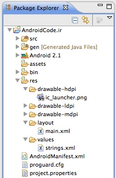 همین طور که در طول برنامه ما منابعی (resources) رو به برنامه اضافه می کنیم (که در فولدر res ذخیره میشن) اندروید به صورت خودکار ورودی هایی رو براشون در این فایل R.java تعبیه می کنه. مثلا برای آیکن برنامه یه ورودی ic_launcher ساخته و بهش یه عدد خاصی رو نسبت داده.