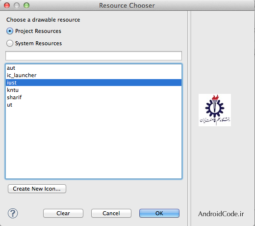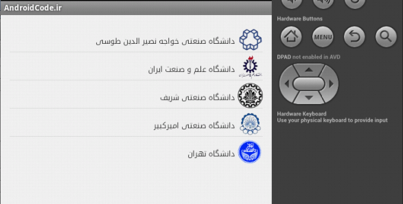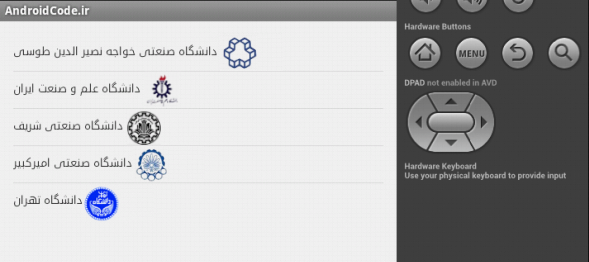 ۱.مثل آموزش قبل یه پروژه با یک فهرست ساده بسازید در ادامه میخوایم برای هر ردیف از فهرستمون یه عکس نشان اون دانشگاه رو هم کنار اسمش بندازیم. پس اول از همه تصاویر مورد نظر رو به پروژه مون در زیرشاخه res و پوشه drawable-hdpi اضافه میکنیم، فایل عکسهایی که من استفاده کردم رو میتونید از اینجا دانلود کنید. وارد کردنش به پروژه هم کار آسونیه، هرجایی که عکسهاتون هست کپی کنید و بعد روی پوشه drawable-hdpi راست کلیک کنید و paste.