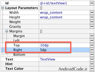 نمایمتنی: textSize:14sp - margin:top:20dp - margin:right:5dp