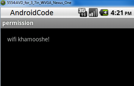 میگه wifi خاموشه، چون تو ماشین شبیه ساز اینجا در واقع از اتصال شبکه ای من برای شبیه سازی شبکه ی داده های تلفن همراه استفاده میکنه، و این همون چیزیه که انتظارشو داشتیم.