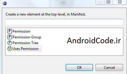 پس روی دکمه Add کلیک کرده و Uses Permission رو انتخاب میکنیم.