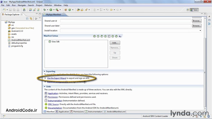 کار کردن با AndroidManifest.xml